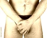Nude man closes groin a hand