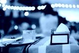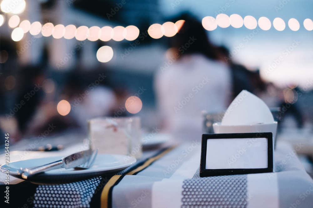 Seafood Dinner at restaurant view on night beach . Image has vintage effect, Grain and noise was added