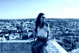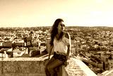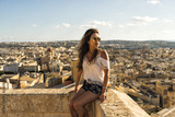 Woman sitting atop the medieval Gozo Citadel castle.