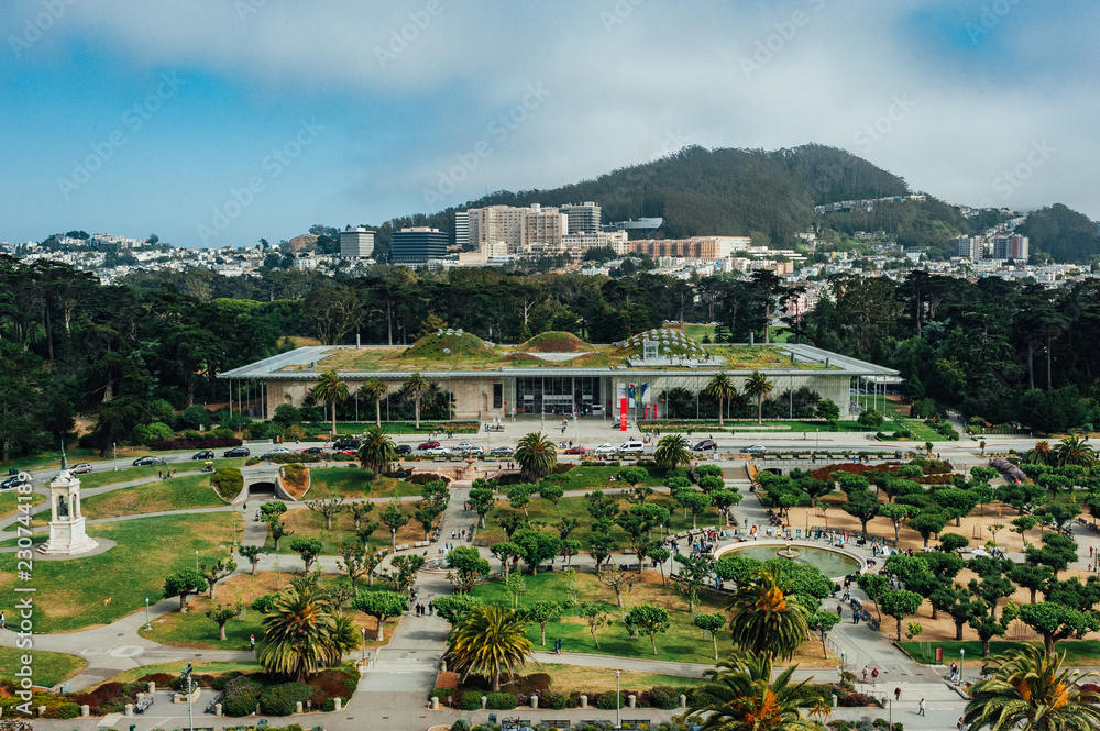 Ariel view of the California Academy of Sciences in San Francisco, California.