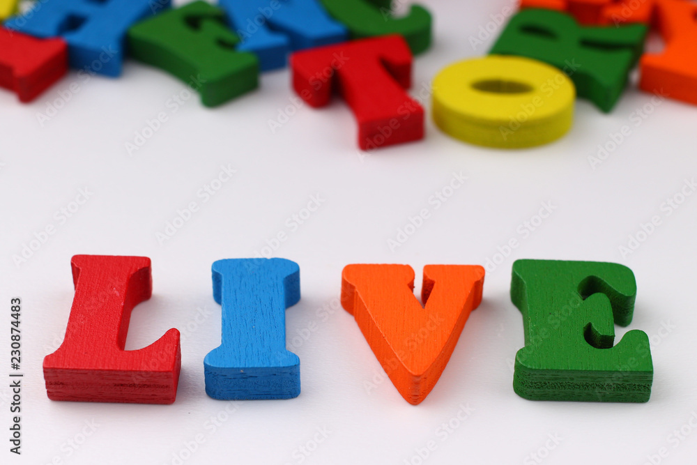 The word live with colored letters