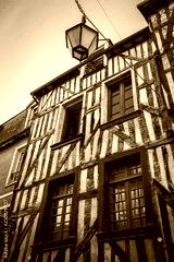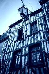 Traditional half-timbered houses in the old town of Rennes city, France