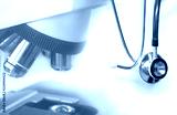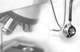stethoscope and microscope for health medical laboratory diagnosis on white background
