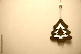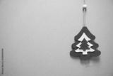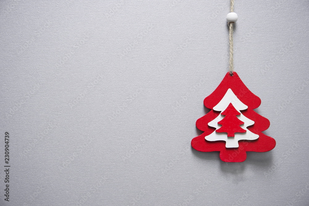 red and white craft of wooden pine tree for Christmas celebration holiday with gray background