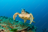 Hawksbill Seaturtle on a colorful tropical coral reef