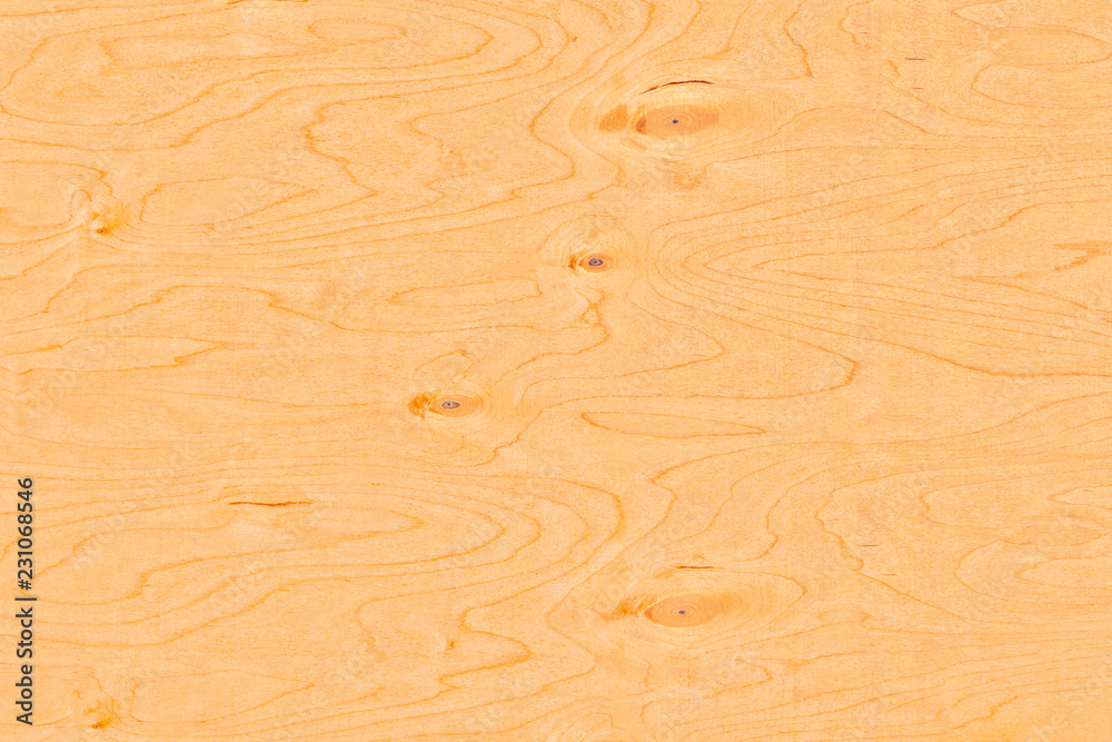 The texture of natural birch veneer with knots. The surface of birch plywood.