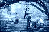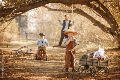 Boys playing in the street and ride a bike summer day