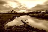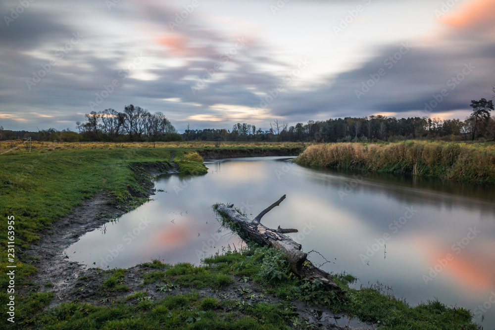 Landscape with Jeziorka river at clody day near Piaseczno, Masovia, Poland