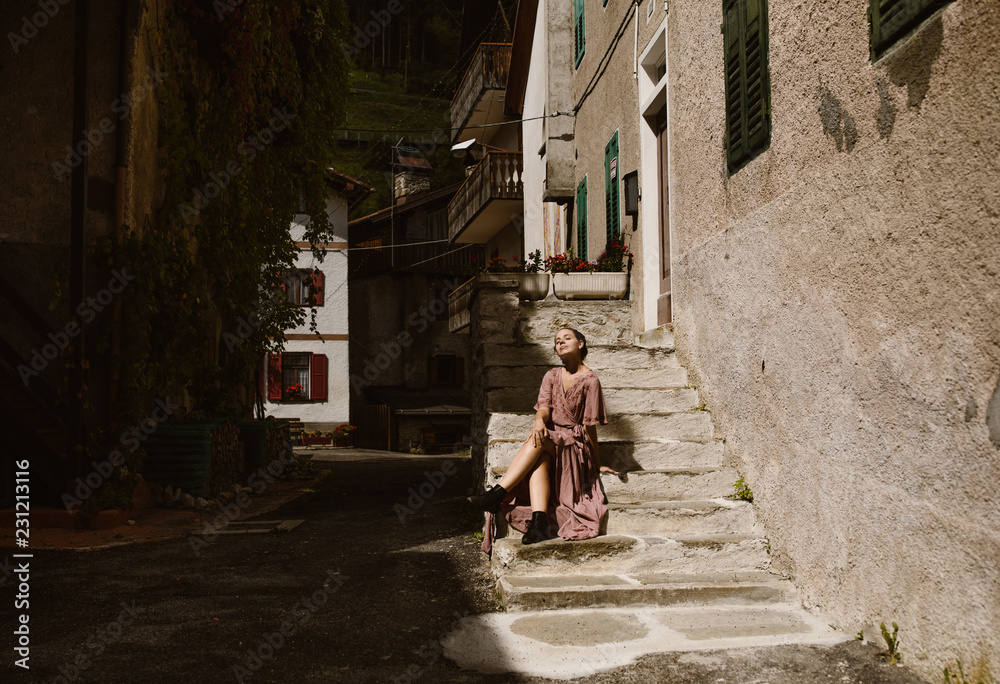woman sitting in an old italian village