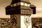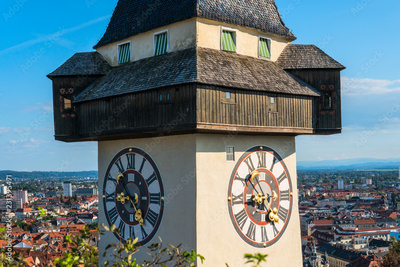 Graz, Austria. The Schlossberg - Castle Hill with the clock tower Uhrturm