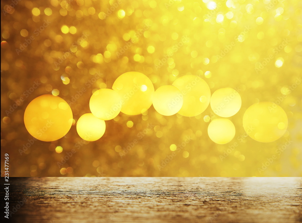orange round lamp with luxury golden glitter bokeh light for Christmas party and top of table background