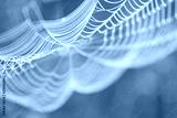 Pajęczyna w porannej rosie na tle zielonej łąki