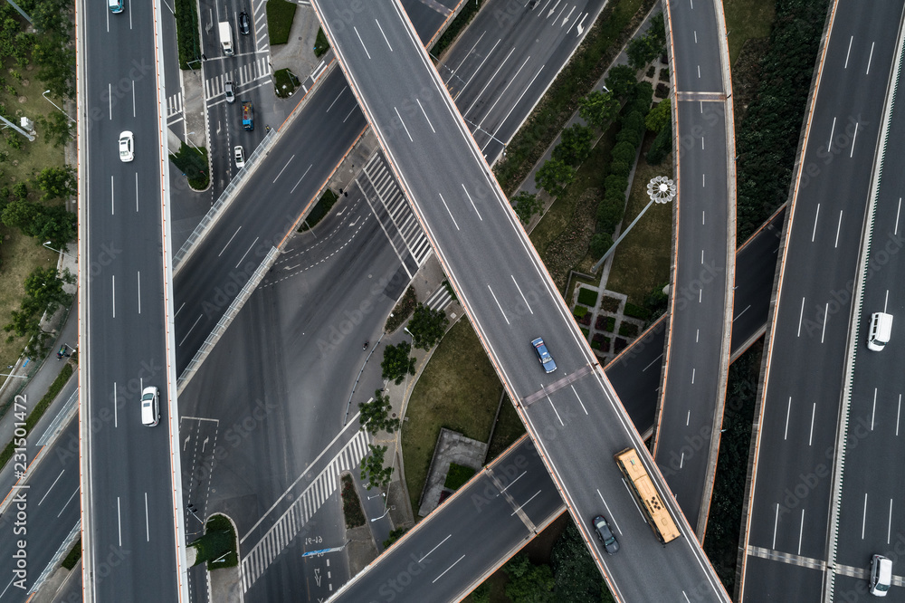 Aerial view of highway and overpass