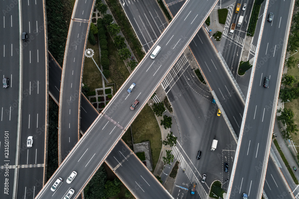 Aerial view of highway and overpass