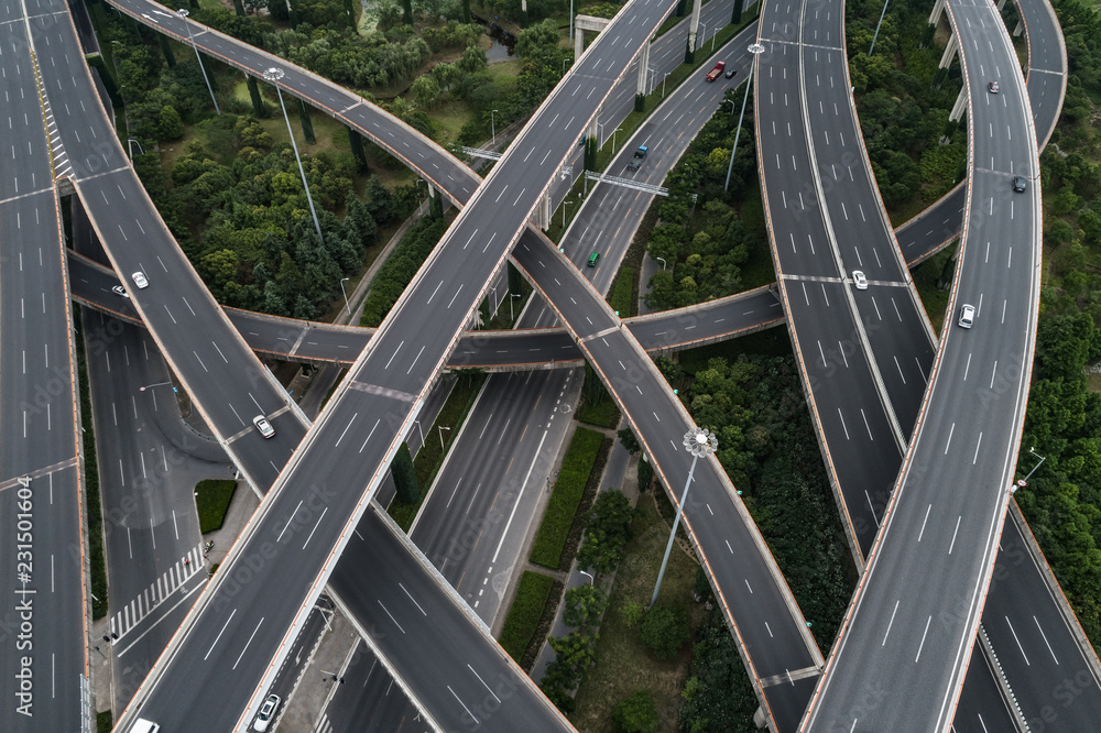 Aerial view of highway and overpass
