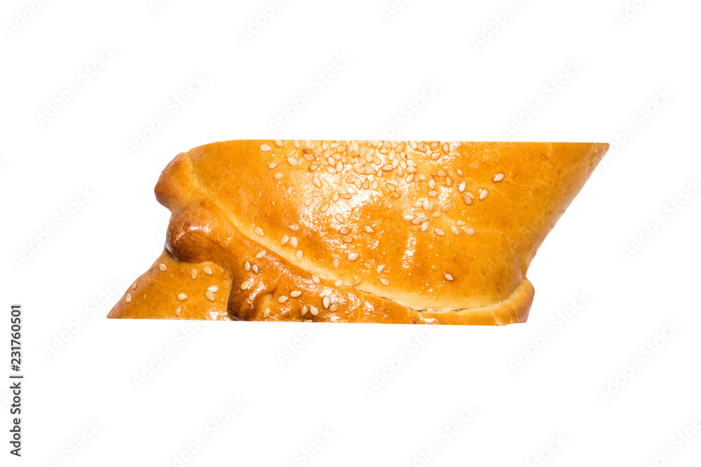 Ruddy fish pie on a white background.Pie with red fish.Fish pie.