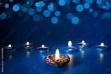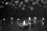 Happy Diwali - Clay Diya lamps lit during Dipavali, Hindu festival of lights celebration
