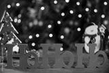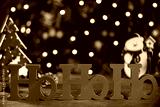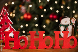 Merry Christmas ho ho ho greeting message with christmas blurry light background.