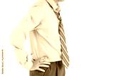 Man wear long sleeve shirt standing with akimbo with clipping path
