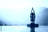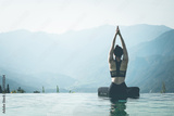 Beautiful Attractive Asian woman practice yoga Lotus pose on the pool above the Mountain peak in the morning in front of beautiful nature views in SAPA vietnam,Feel so comfortable and relax in holiday