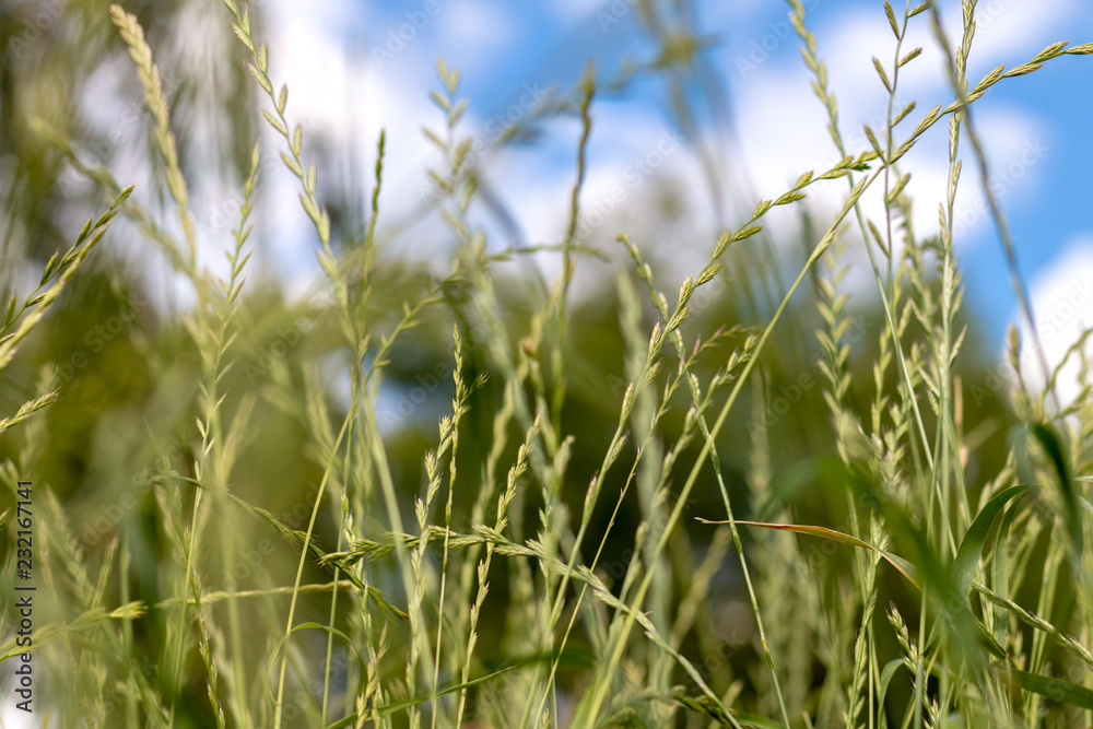Ears of lawn grass sleep in autumn