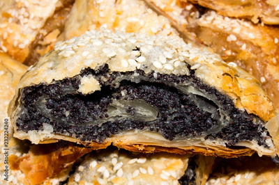 Pies with poppy seeds and sesame seeds.Background of pies with poppy seeds.