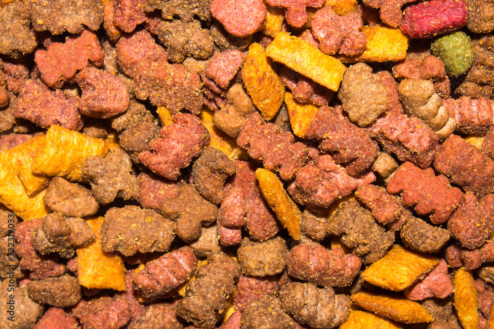 The texture of dry cat food.Background of dry cat food.Assorted cat food.