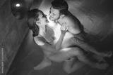 Happy couple kissing in swimming pool spa center - Romantic lovers having a tender moment on vacation in resort wellness hotel - Relationship and love concept