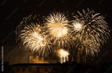 Fireworks at Cathedral Fourviere in Lyon on the french National Day July 14, Bastille day.