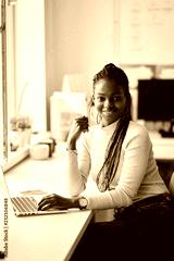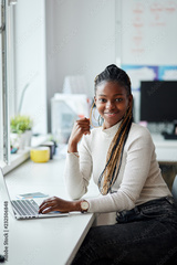 smiling excited hardworking african employee dressed casually looking at the camera. beauty,