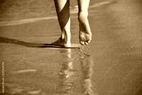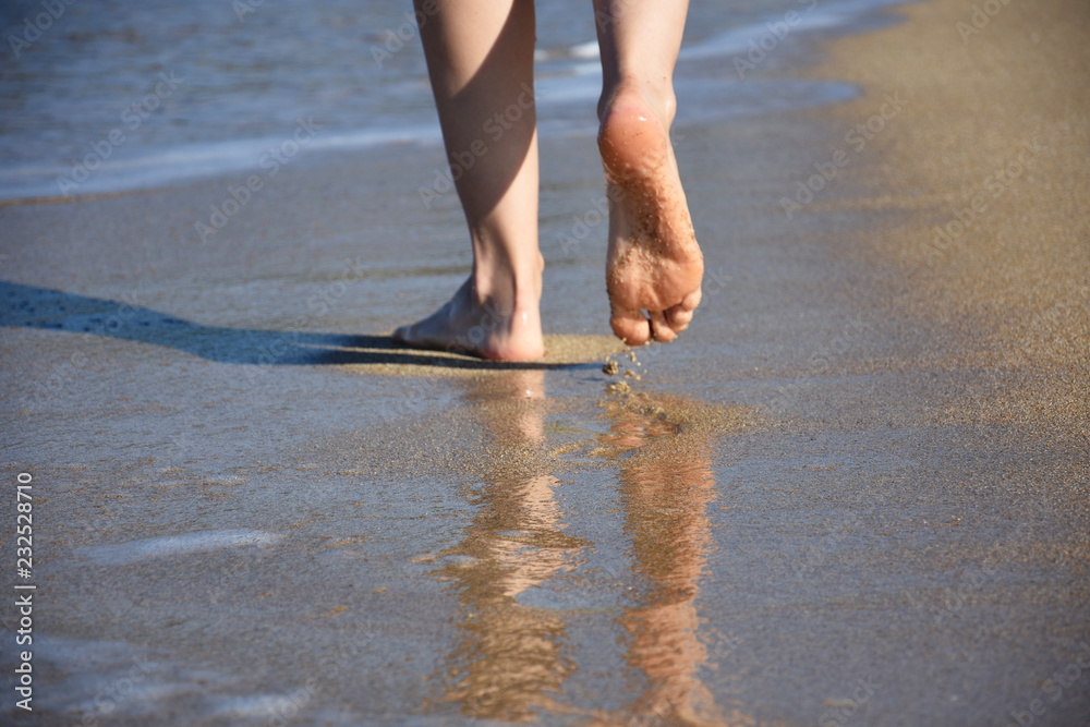 Woman walking on sandy beach. Beach travel - Summer vacations concepts, woman legs on sand