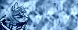 Gray cat in a checkered scarf on autumn background of yellow leaves