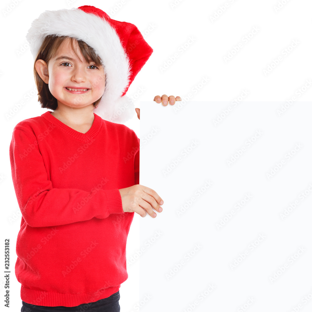 Kind Weihnachtsmann Nikolaus Weihnachten Mädchen lachen Schild Textfreiraum Copyspace