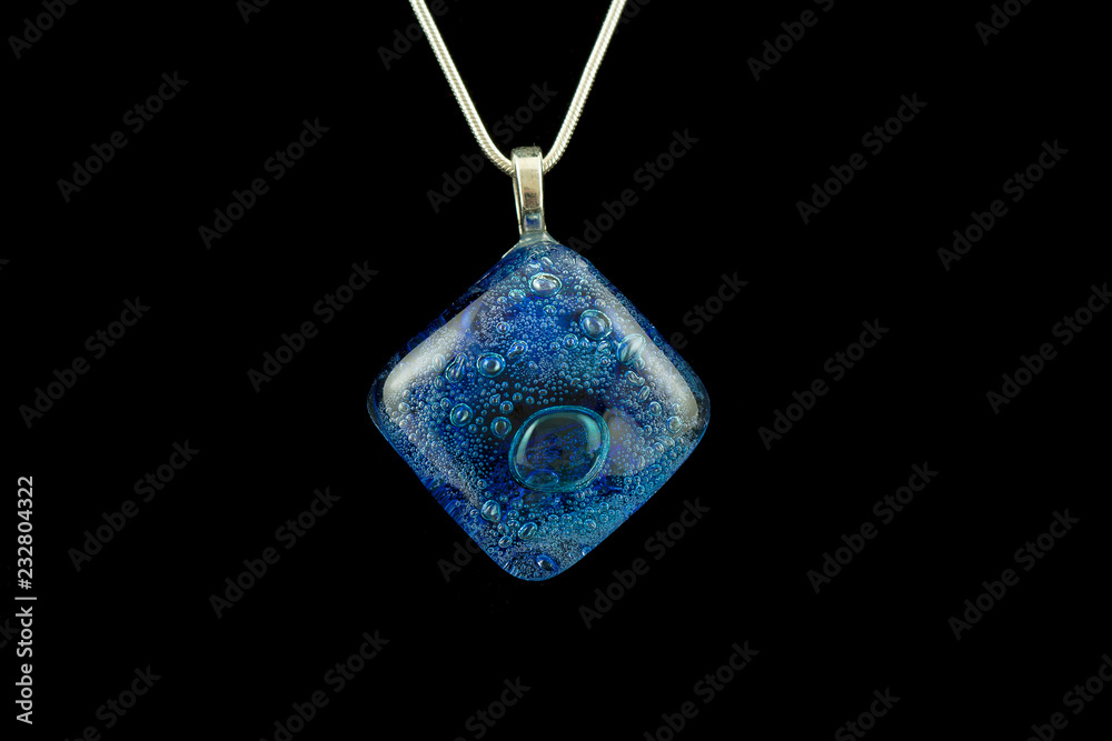 Collection of colorful glass beads, tassels, bracelets, pendants of different sizes and shapes. Colored Venetian, Murano glass, Silver glass, millefiori. Shot on a black background.