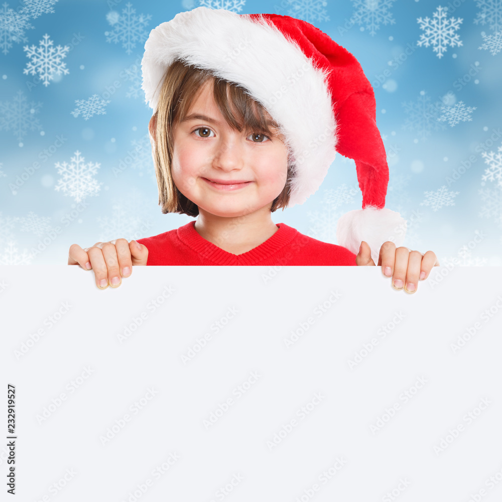 Weihnachten Kind Mädchen Weihnachtsmann Nikolaus Schild Quadrat Textfreiraum Copyspace