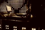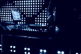 Deejay at the Party.hand of the DJ operator.DJ playing music at mixer closeup