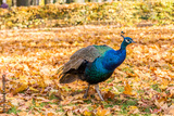 Paw w Parku w Warszawie w Polsce podczas jesieni