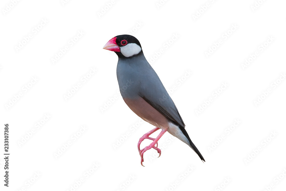 Beautiful bird Java sparrow or Java finch isolated on white background