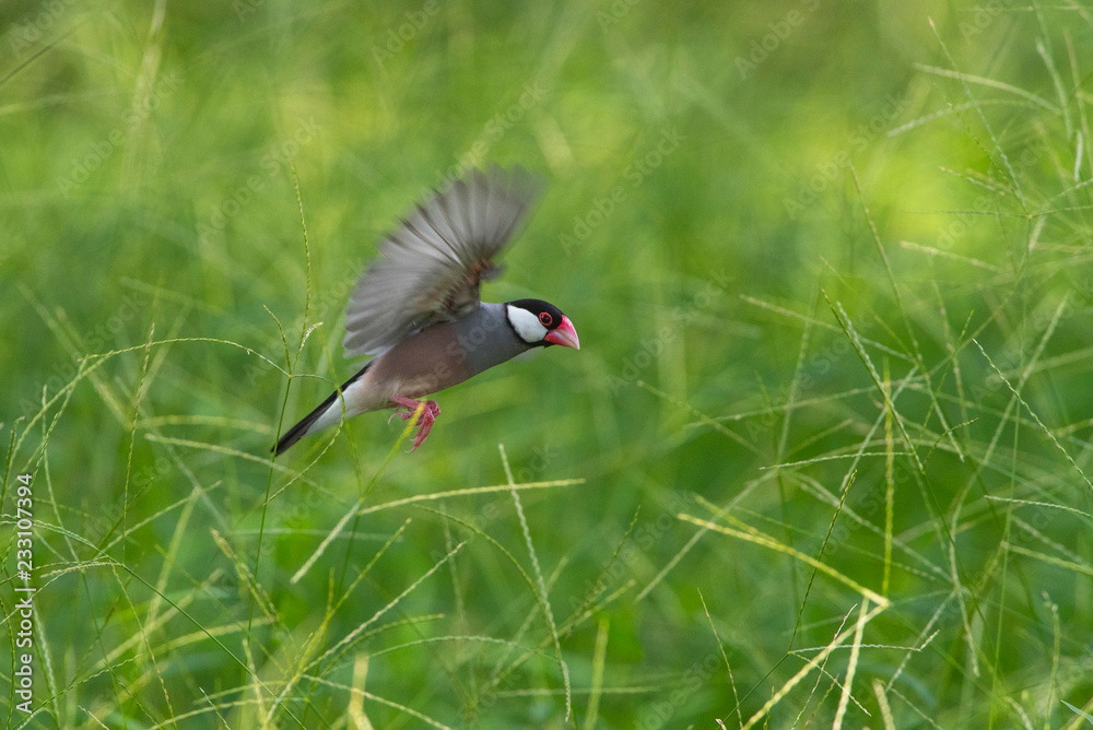 Beautiful bird Java sparrow or Java finch (Lonchura oryzivora)