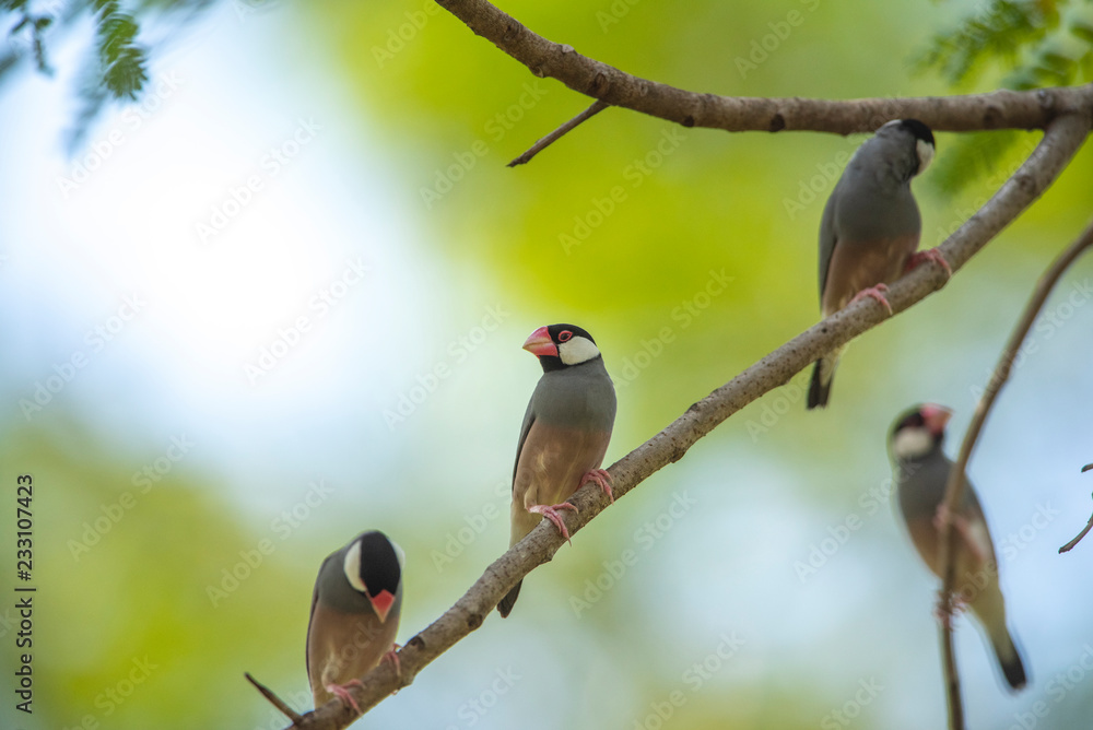 Beautiful bird Java sparrow or Java finch (Lonchura oryzivora)