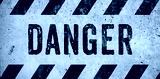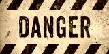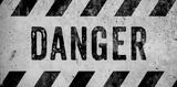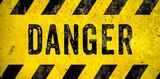 DANGER warning sign word text as stencil with yellow and black stripes painted over concrete wall cement texture wide banner background. Concept image for caution, dangerous area and hazard.