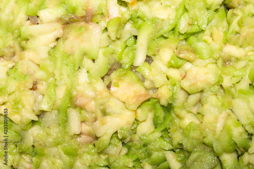 Avocado salad.Grated avocado.Background of the avocado.Crushed avocado.