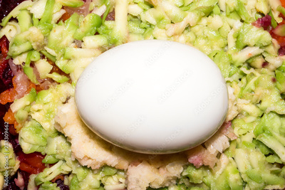 Avocado salad with egg.Grated avocado.Background of the avocado.Crushed avocado with boiled egg.