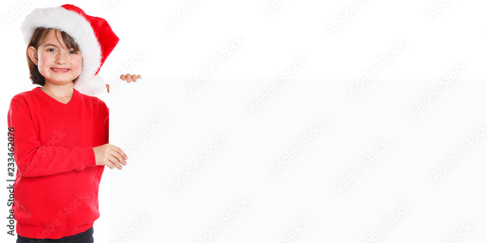 Kind Weihnachtsmann Nikolaus Weihnachten Mädchen Schild Textfreiraum Copyspace Freisteller