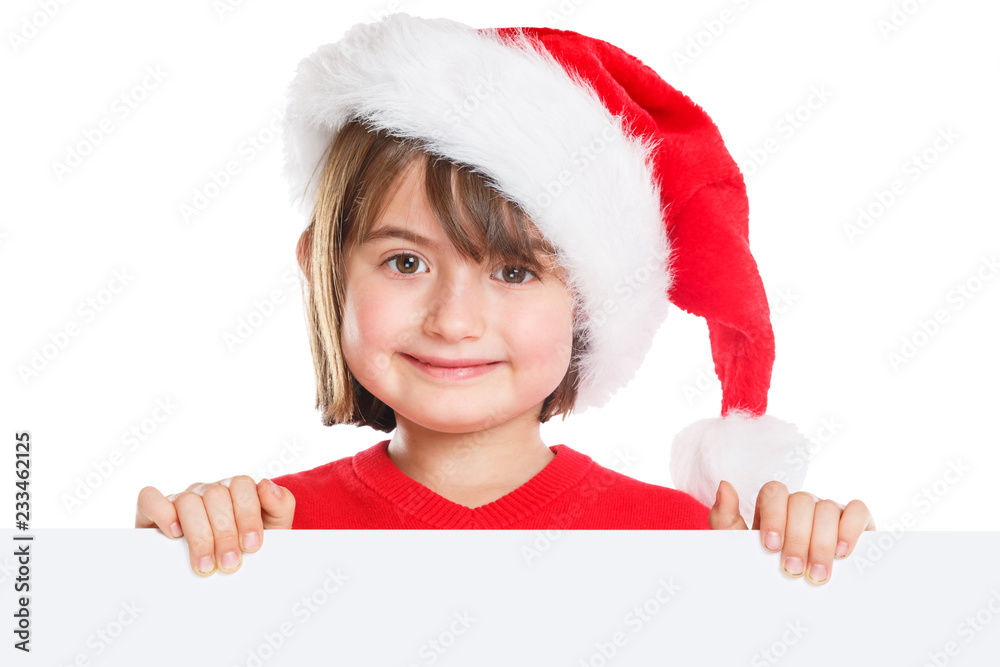 Kind Mädchen Weihnachtsmann Nikolaus Weihnachten Schild Textfreiraum Copyspace