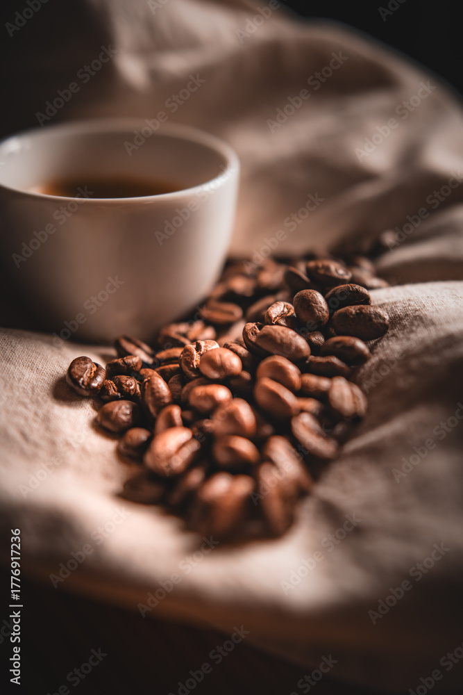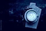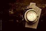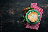 Cappuccino. Coffee with milk. On a black wooden background. Top view. Free copy space.