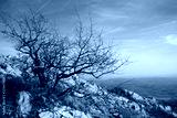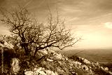 Autumnal landscape of a lonelly bare tree on a mountain top