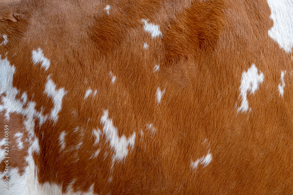 Texture of brown Cow Coat. Fragment. White and brown spots.