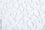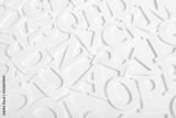 White wooden alphabet letters top view on white background