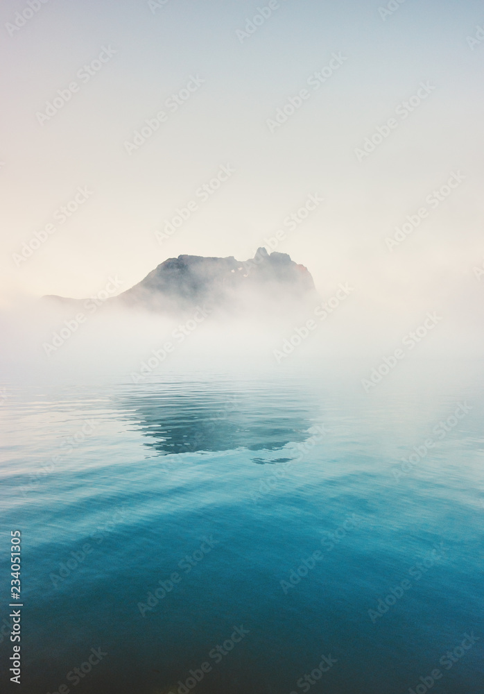 Foggy cold sea moody landscape travel misty morning view nature scenery